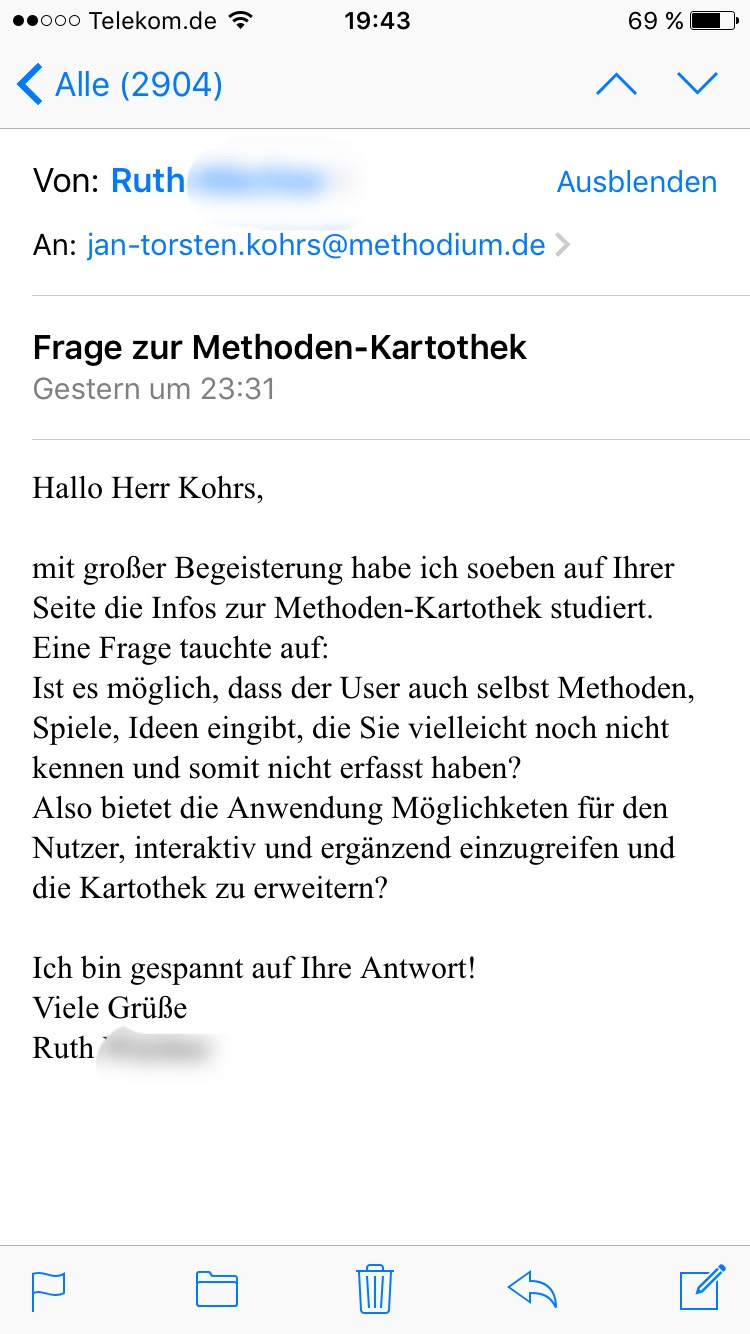 Das Herzstück von methoden-kartothek.de ist sicherlich die komfortable Möglichkeit Seminarablaufpläne zu erstellen („Spielplan“). Dabei kann man auf die integrierte Methoden-Datenbank zurückgreifen und wird sogar über Filterfunktionen, und Empfehlungen unterstützt. Was jetzt aber, wenn man auf eine Methode zurückgreifen möchte, die nicht in der Datenbank enthalten ist?