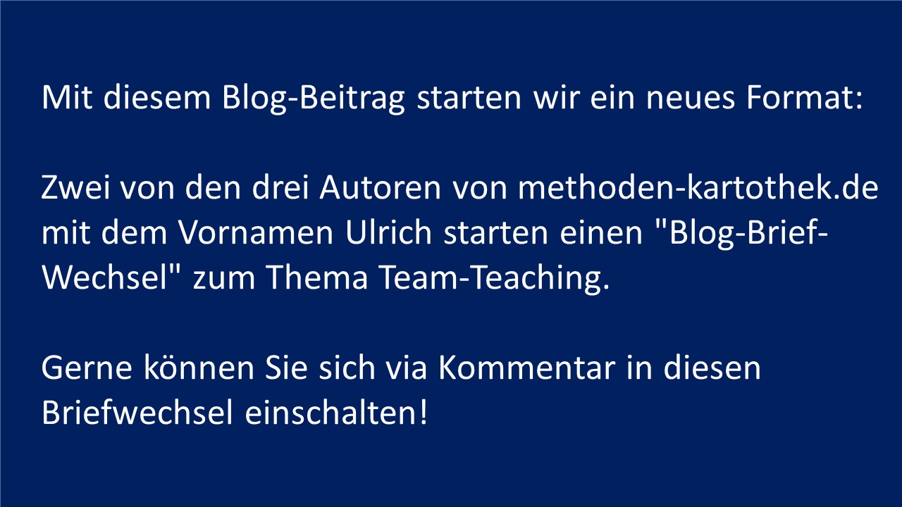 Nachgedacht haben wir über diese besondere Lehr-Lern-Situation des Team-Teachings bisher selten. Aber da sind wir ja auch nicht die Einzigen, mit Blick auf und in die Fachliteratur.