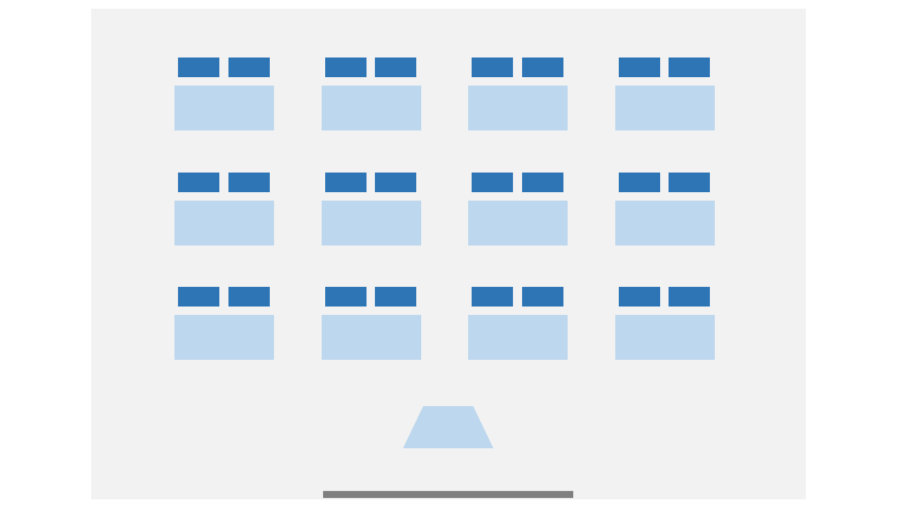 - Nachteile: Die Teilnehmer sitzen z.T. weit weg vom Dozenten; um den Raum spontan zu verlassen, müssen Personen aus der Mitte über die anderen steigen