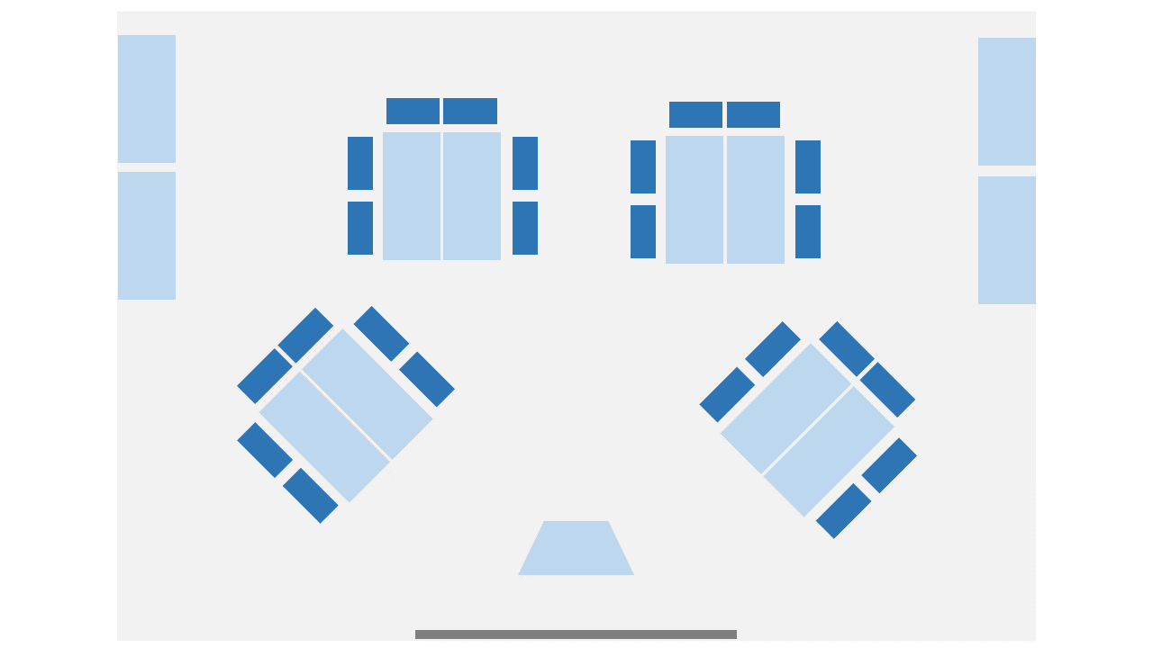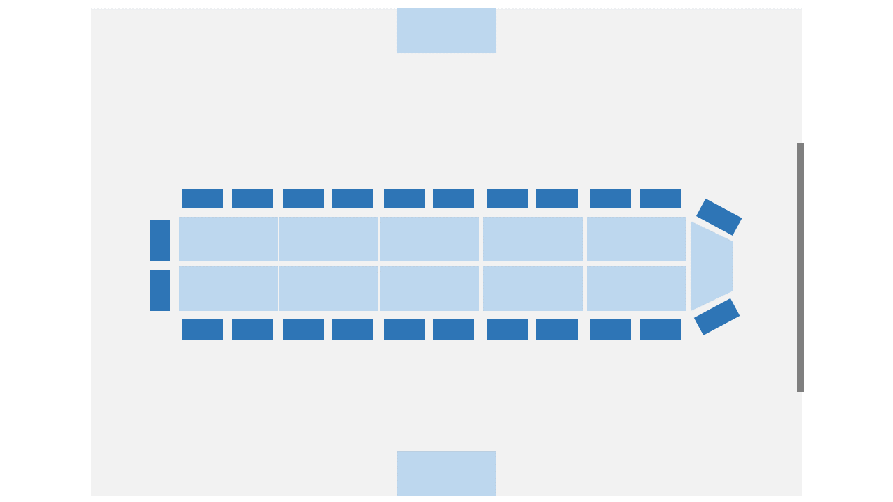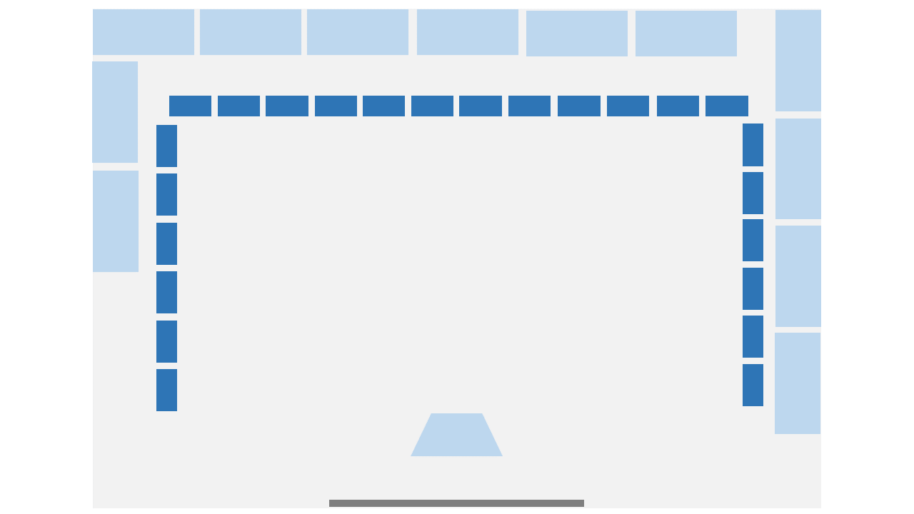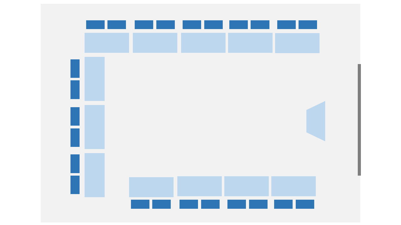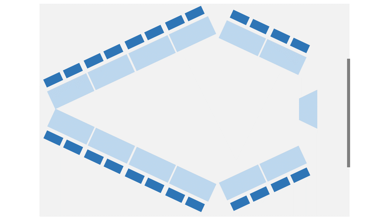 - Nachteile: bildet kein wirkliches Plenum: Personen in der Mitte sitzen im Rücken, ungünstig für Diskussionen; bei kleinen Tischen hat nicht jeder TN Tischfläche